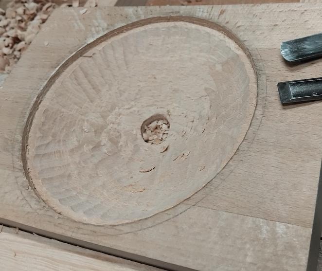 L'entonnoir où se rejoindront toutes les billes. Il est creusé dans un bloc en hêtre de 4 cm d'épaisseur (chute de plan de travail). Contrairement à un entonnoir classique, où la pente est forte pour que les liquides s'écoulent rapidement, ici la pente est faible pour voir les billes tournoyer un moment avant de disparaître. ![]() ![]() ![]() Pourtant c'est pris au même endroit de l'atelier, avec le même appareil et le même éclairage... (Je suis plus à l'aise avec le bois qu'avec un appareil photo, il faut bien l'avouer...) ![]() (Un croquis fait sur l'ordinateur, parce que je suis plus à l'aise avec le bois qu'avec un crayon, il faut bien l'avouer...) ![]() |