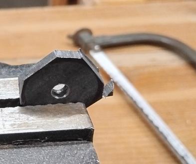Découpe à la scie à métaux.![]() Puis finition à la lime pour obtenir un cercle. Je dois limer également en épaisseur car l'encoche dans le fer Veritas fait légèrement moins que 4 mm. ![]() Et enfin, des entailles à la scie pour obtenir le crantage de la molette. ![]() |