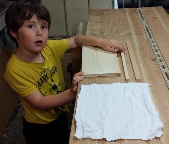 La liste des ingrédients est simple : il suffit d'une planchette, de deux tasseaux et d'un bout de chiffon.