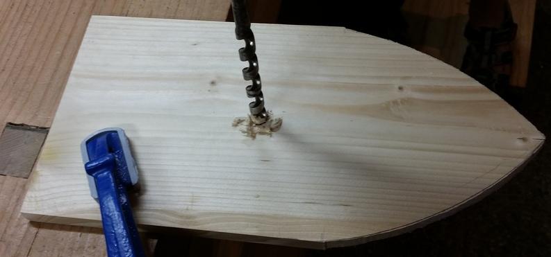 Puis on y perce l'emplacement du mât.
