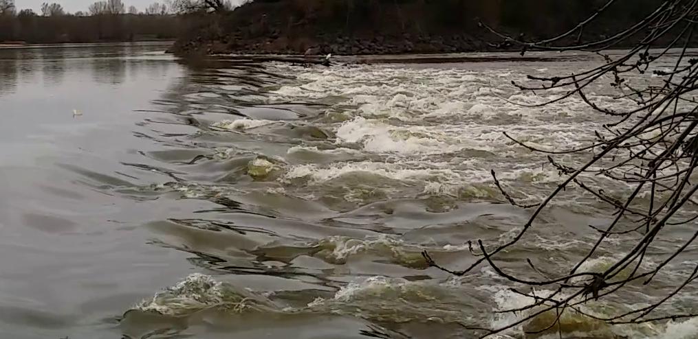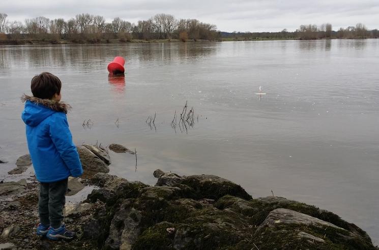 Coup de chance, en revenant de promenade à vélo le long de la Loire, nous retrouvons le bateau juste avant qu'il franchisse un sacré obstacle pour sa petite taille (pour les gens qui connaissent le secteur, c'est juste en face de l'île de Béhuard).