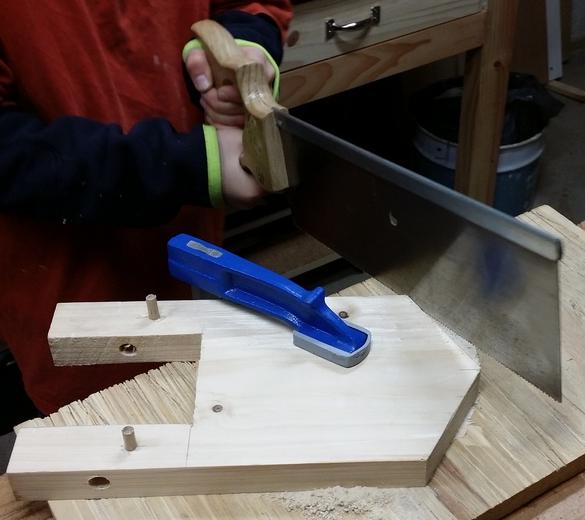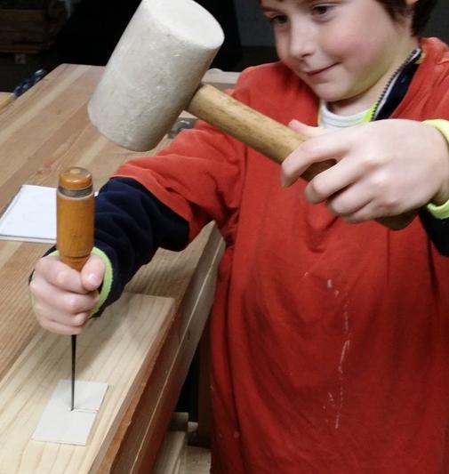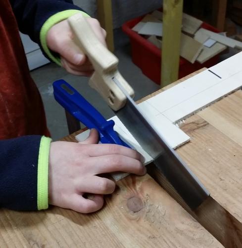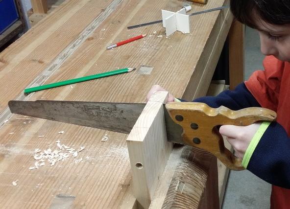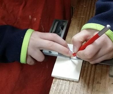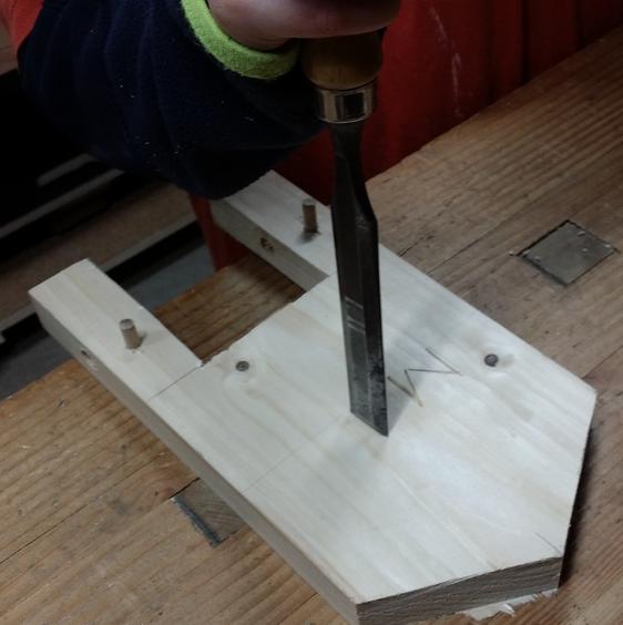 Après deux traits de scie, il fait sauter l'encoche d'un coup de ciseau.![]() |