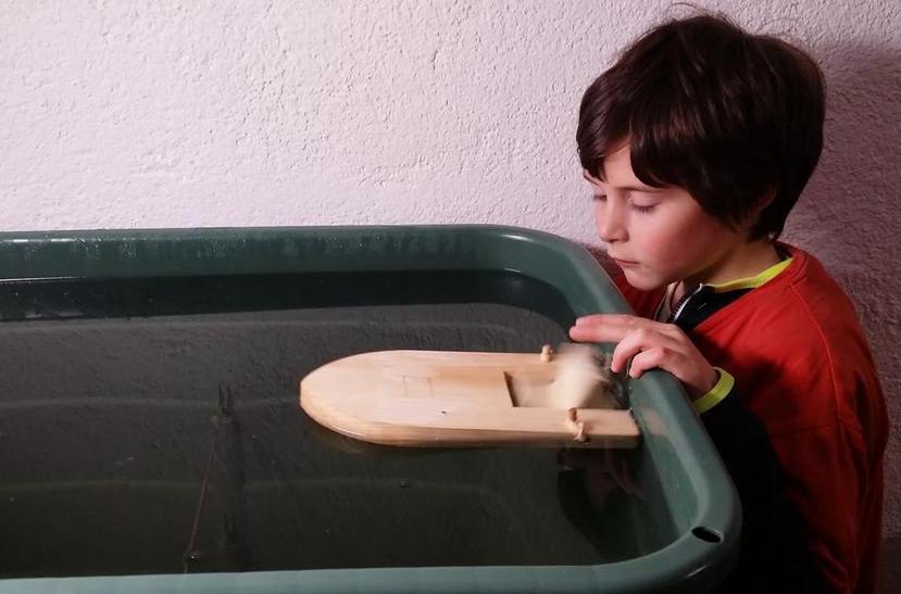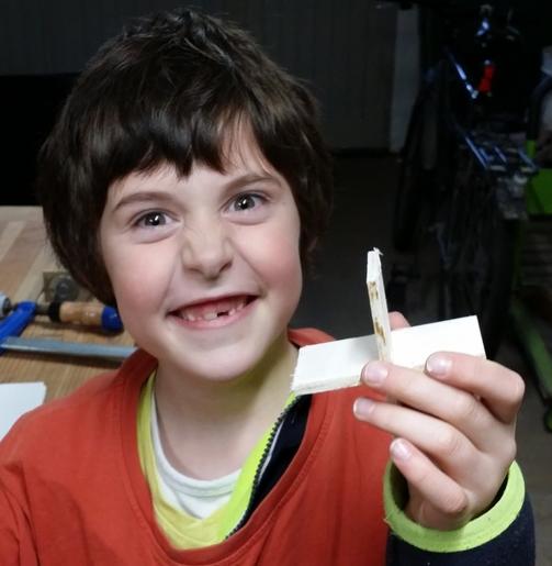 Il a fait une de ces têtes :-) Mais il a compris que le but n'était pas d'avoir un bateau, mais de savoir le fabriquer lui-même. Et surtout, grâce à ce prototype je me suis aperçu que j'avais percé les trous latéraux juste à la largeur de l'élastique (6 mm) et que ça ne permettait pas une torsion sur beaucoup de tours. Cela a évité la frustration de passer beaucoup de temps à fabriquer quelque chose qui fonctionne mal. ![]() |
