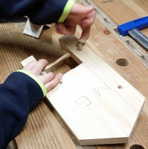 Étape importante : il faut signer le chef d'oeuvre naval en y gravant les initiales du moussaillon !![]() |