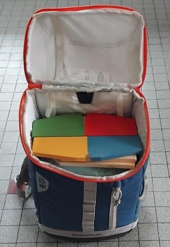 Les dimensions 220 mm x 140 mm sont imposées par le sac de transport, qui contient aussi le pique-nique, le nécessaire de réparation vélo, etc. Parce que la mise à l'eau se fera lors d'une balade à VTT. Ce qui explique aussi la nécessité de trouver une façon de rendre les bateaux démontables, et pour qu'on puisse les assembler sans outillage. ![]() |