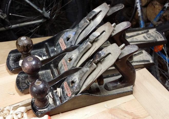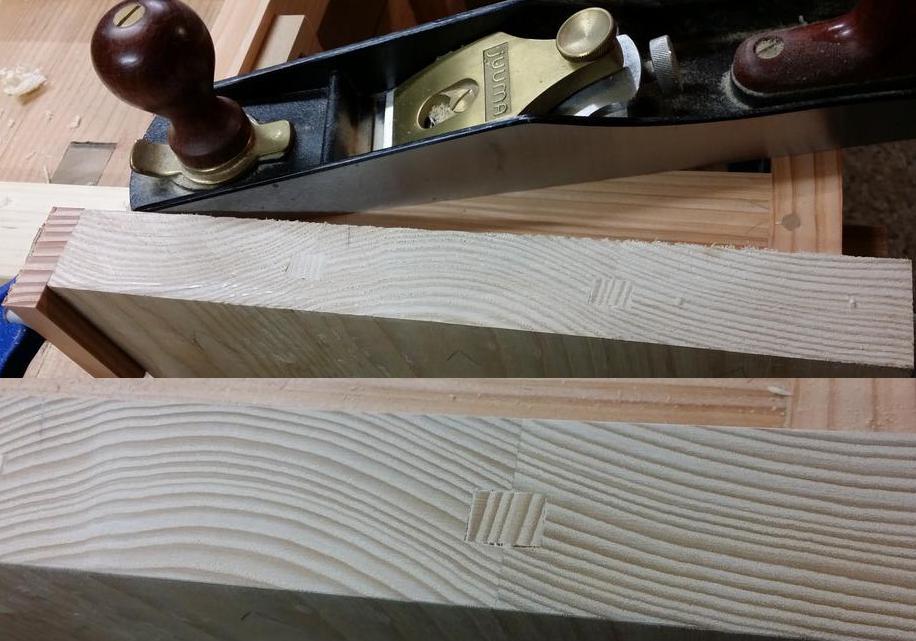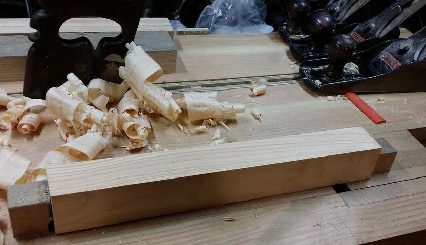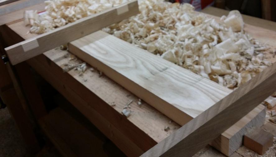 Quelques passes de rabot pour la finition du chant du plateau.![]() |