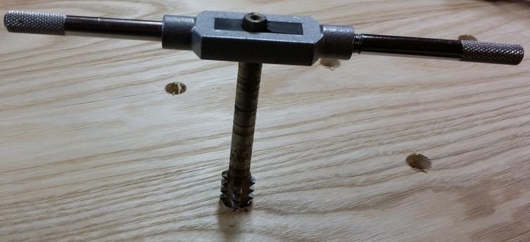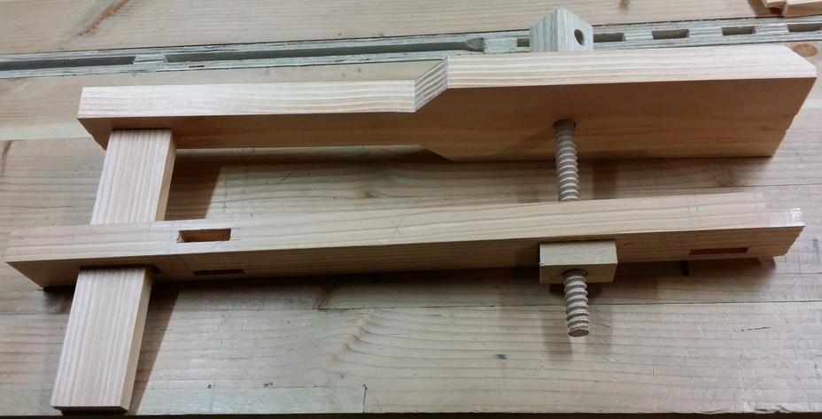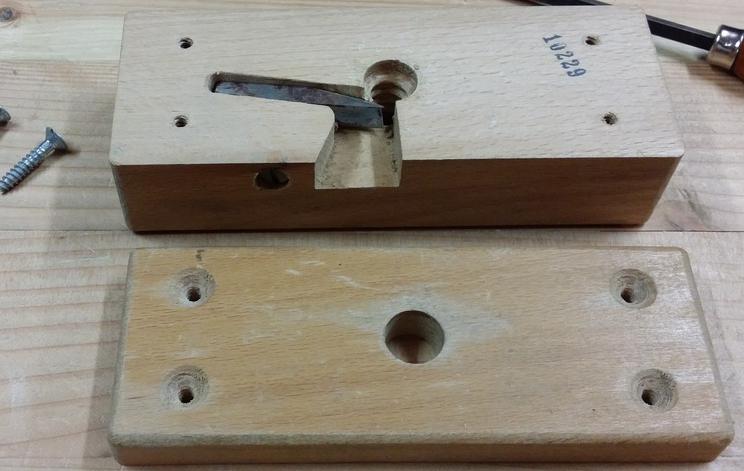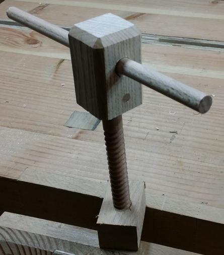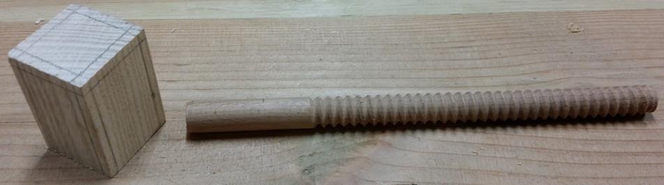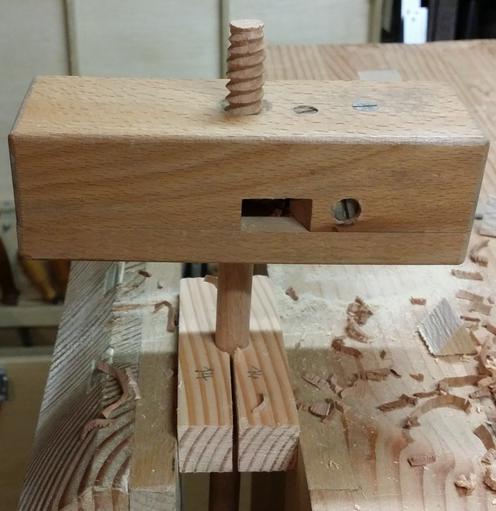 Filetage d'une tige de hêtre de 14 mm.![]() Le fer entaille la tige, qui est simplement guidée par le filetage dans le bloc en hêtre. ![]() |
