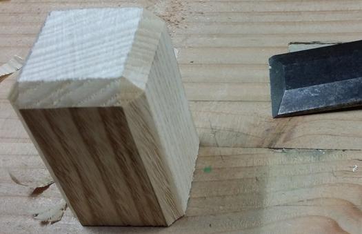 Plutôt qu'un vrai marteau en métal, ou un tout en bois, j'ai opté pour un marteau en caoutchouc dur. Pour cela, j'ai sacrifié un maillet de carreleur. La matière est dense et se découpe très bien. ![]() ![]() |