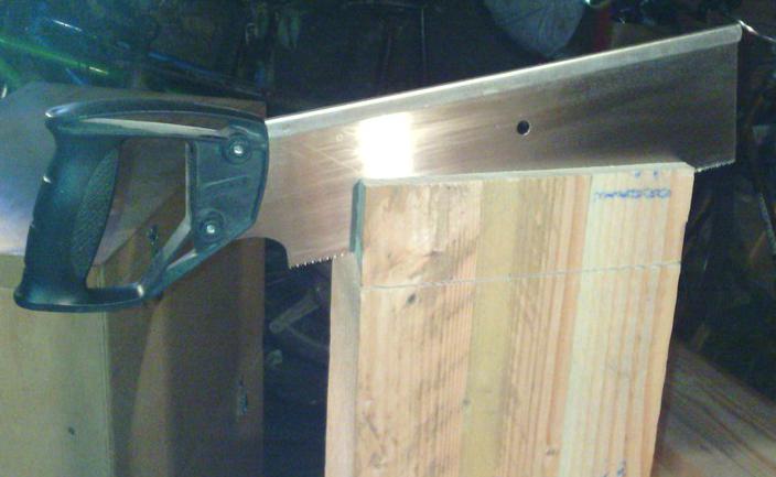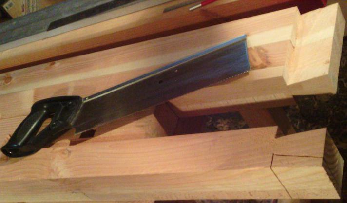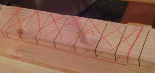 En avant pour les queues d'aronde ! À la scie à dos, et finition au ciseau. |