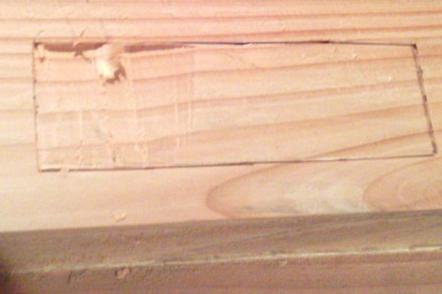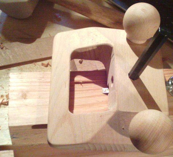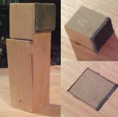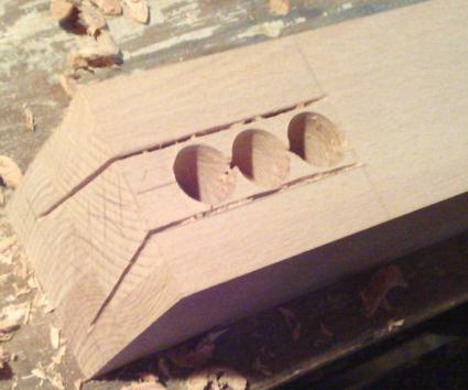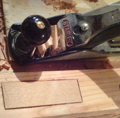 | Et voilà : il n'y a plus qu'à poser dedans les petits bouts de hêtre, et raboter ce qui dépasse : |