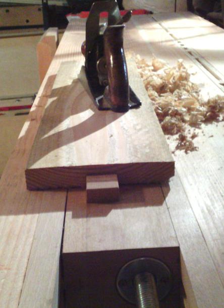 | Premier test : pas besoin de serrer fort, ça maintient très bien la pièce à raboter : |