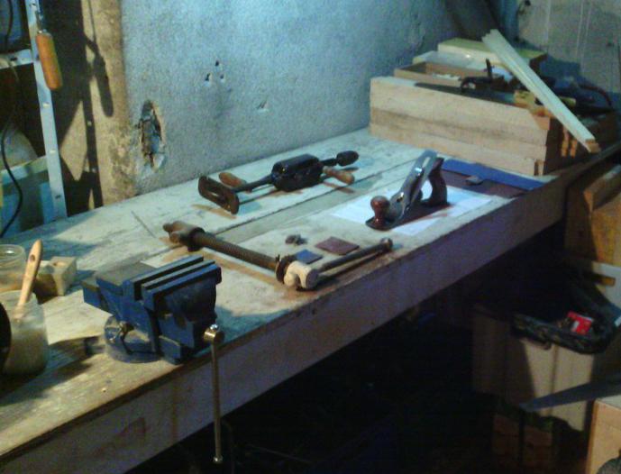 La retraite approche et parmi mes nombreux projets pour cette heureuse période, il y a un déménagement pour échanger mon petit appartement pour une maison avec un atelier ! Je commence donc à m'équiper, mais pour en profiter dès maintenant, je vais m'aménager un petit coin dans la cave. Un établi digne de ce nom ne passerait pas dans le petit escalier qui mène à la cave, donc je vais fabriquer un établi rudimentaire mais fonctionnel, pour juste quelques années, ça ne me posera pas de problème de le laisser sur place quand je partirai. Le "challenge" est double :