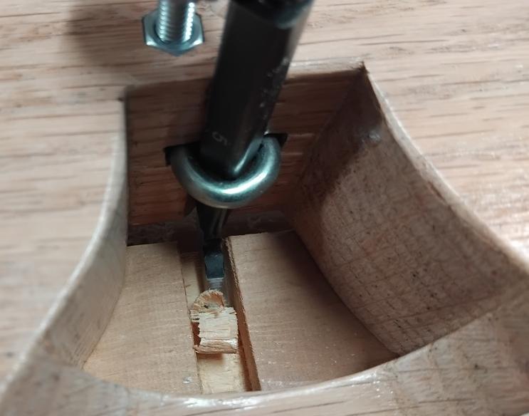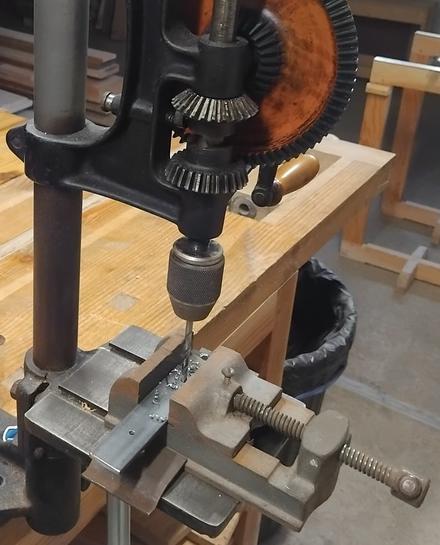 Je reviens à la perceuse à colonne pour percer deux axes de 6 mm, dans un bloc de chêne de 200x95x50 mm.![]() ![]() |