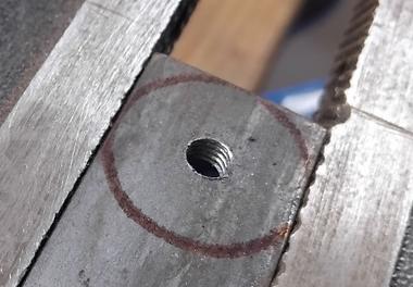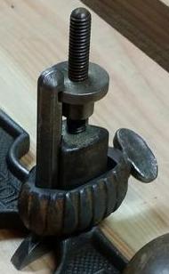 Ne trouvant pas aisément de molette adaptée pour le réglage de profondeur de la guimbarde, je commence par sa fabrication. Je sors ma bonne vieille perceuse à colonne. ![]() Puis je taraude à 6 mm. ![]() ![]() |