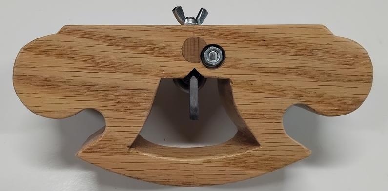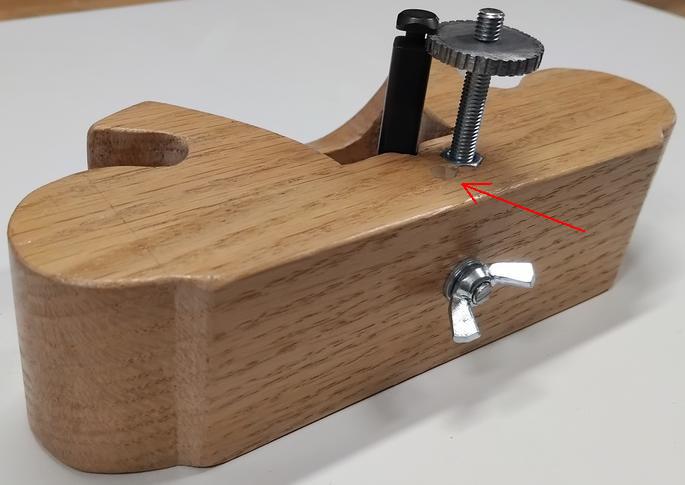 Et au moment de l'assemblage final, c'est le drame... Parce que, comme sur la Stanley métallique, j'ai placé l'écrou de serrage et la tige de réglage de profondeur dans le même alignement, derrière le fer ! ![]() Fort heureusement, l'erreur est rattrapable. Il suffit de boucher le trou vertical et de repercer en le décalant... OUF ! ![]() ![]() Pour que la tige filetée ne pivote pas, sur le dessus de la guimbarde j'ai encastré un écrou, et il y a un contre-écrou de blocage au dessous. ![]() |