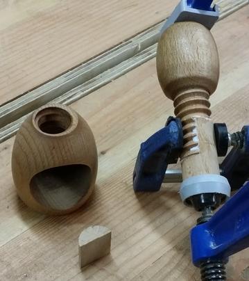Découpe sur 25 mm dans le sens de la longueur de la vis, en gardant la moitié où le filetage est le moins abimé. Et découpe dans un barreau rond en hêtre de la pièce de remplacement, puis collage. ![]() |