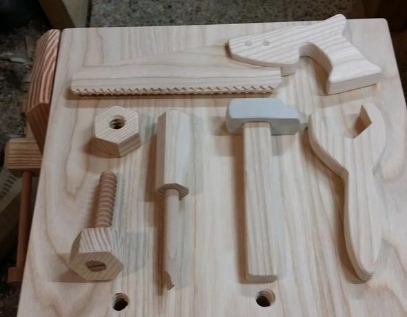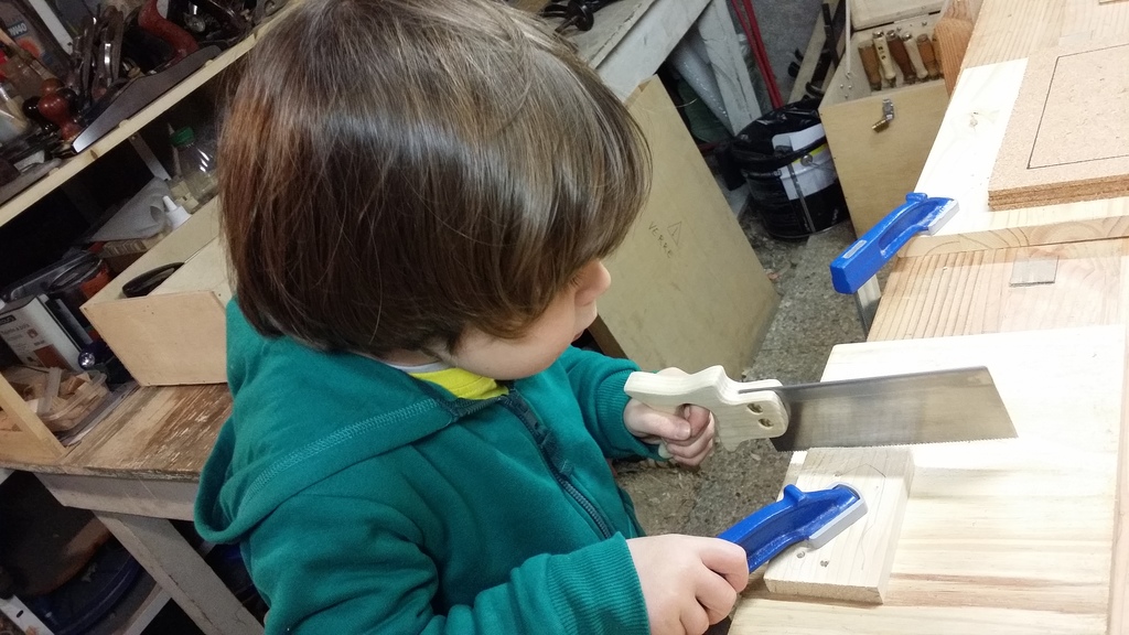 Après une panoplie d'outils en bois, il est temps de fabriquer de vrais outils pour le petit-fils. Des outils toujours à sa taille, mais entièrement fonctionnels cette fois, et à utiliser uniquement en présence d'un adulte.![]() |