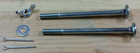 Pour la fixation, c'est simplement deux boulons de 120x8 que j'avais dans mon stock de quincaillerie, une rondelle, un écrou papillon et deux goupilles.