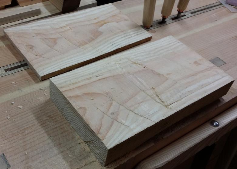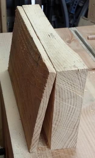 Alors je m'attaque à une chute de madrier en Douglas, 200 mm de large sur 350 mm de long.