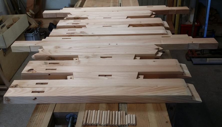Tous les assemblages en tenon-mortaise sont chevillés à la tire.![]() |