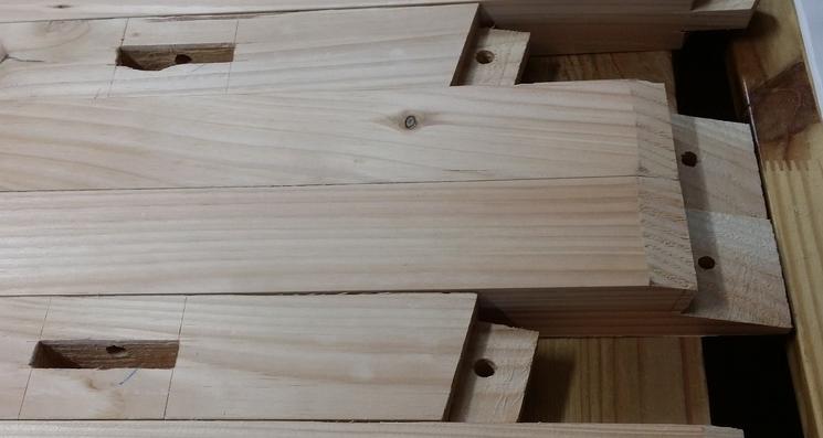 Une autre utilisation des chutes : employer celles au bon angle comme cales, pour l'assemblage final.![]() |