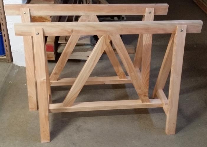 Venant de déménager, je dispose désormais d'un atelier de 70 mètres carrés, en remplacement de ma cave qui n'en avait que 16 ! J'en profite donc pour me fabriquer des tréteaux dignes de ce nom. J'avais juste des tréteaux pliants, bien pratiques certes, mais sur lesquels je ne pouvais que poser du bois. Désormais, avec ceux-ci, je pourrai travailler dessus : assembler, taper, sans crainte. ![]() |