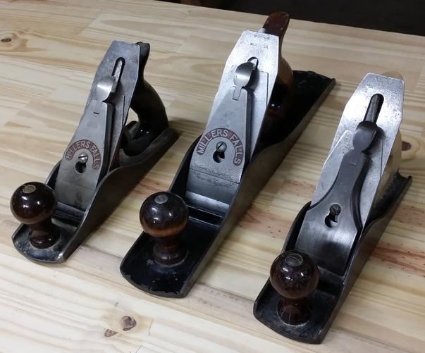 Millers FallsÀ gauche un 9C, équivalent au Stanley n°4C Au milieu un 15, équivalent au Stanley n°5 1/2 À droite, un rabot reconstitué... semelle Sargent, fer Millers Falls ![]() ![]() |
