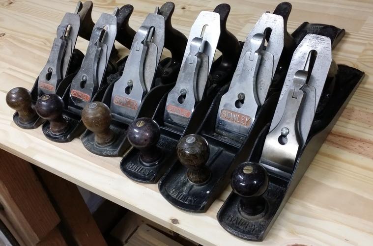 Les rabots Stanley les plus courantsPour des détails sur ces outils voici le lien sur le site supertool de Patrick Leach, qui est la "Bible" des outils Stanley De gauche à droite sur la photo ci-dessous : n°3, n°4, n°4 1/2, n°5, n°6, n°5C ![]() ![]() ![]() ![]() |