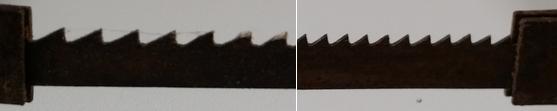Scie à guichet, sans marquePour compenser sa faible largeur, la lame est très épaisse pour garder de la rigidité.Elle est en 8 TPI. ![]() |