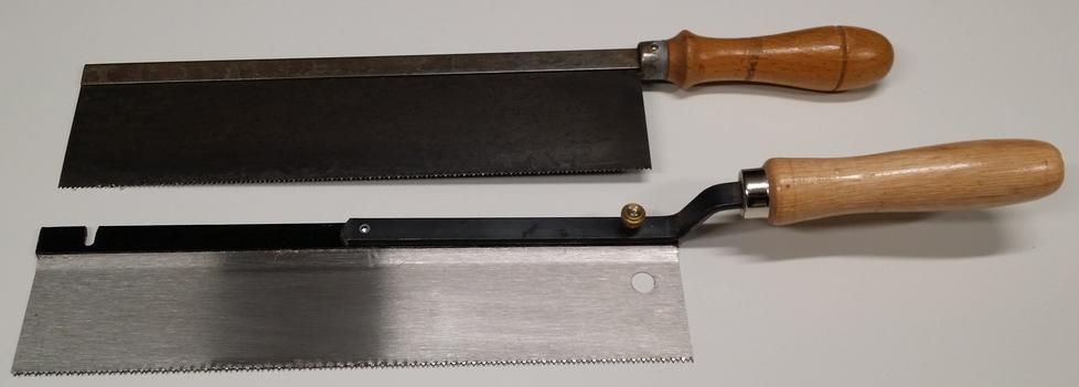 SterlingÀ gauche, sur le ratelier, deux scies à dos à poignée cylindrique.En haut, une gentle saw, sans marque, trouvée pour 50 centimes en brocante. Au dessous, une scie sterling, utilisée essentiellement pour araser les chevilles. ![]() |