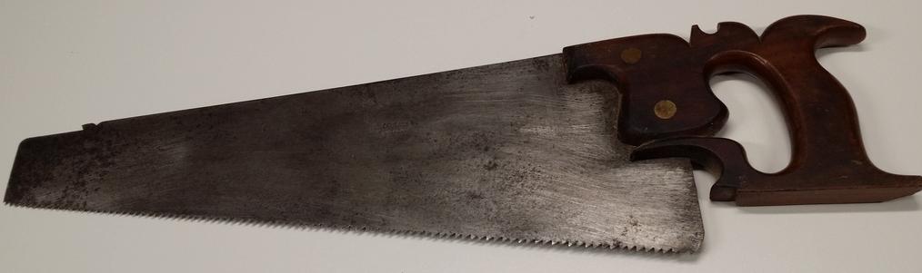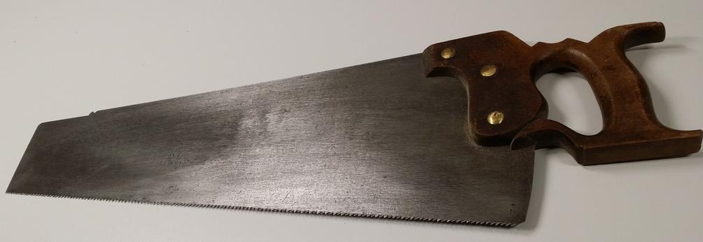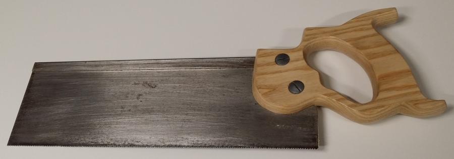 Égoïne DisstonÉgoïne Disston.C'est ma seule scie affûtée en cross-cut (tronçonnage : pour couper en travers du fil). Toutes les autres sont en rip-cut (délignage : couper dans le sens du fil du bois). Elle est en 9 TPI. ![]() ![]() |