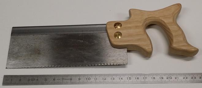 Scie à dos AugustaElle est en 8 TPI. C'est une denture peu courante pour une scie à dos, et elle est aussi plus longue.Je l'ai depuis 40 ans, je n'en ai jamais vu d'autre de cette marque, mais une recherche sur internet m'a montré qu'Augusta existe toujours. ![]() ![]() |